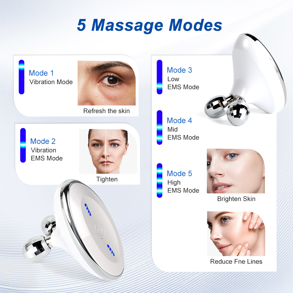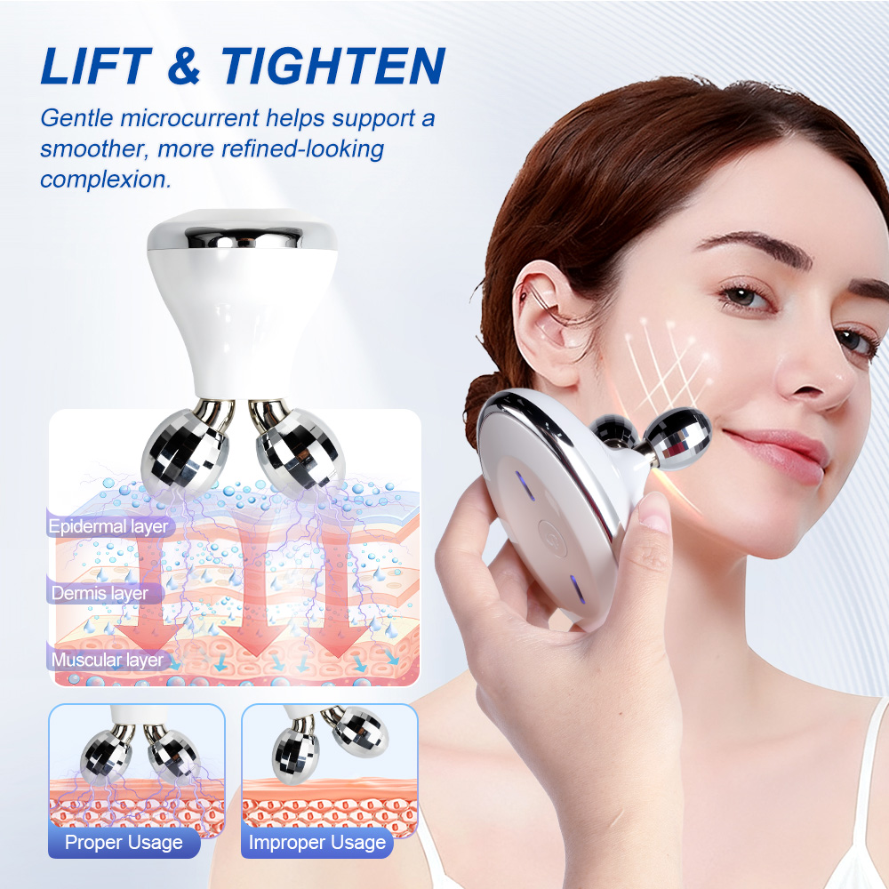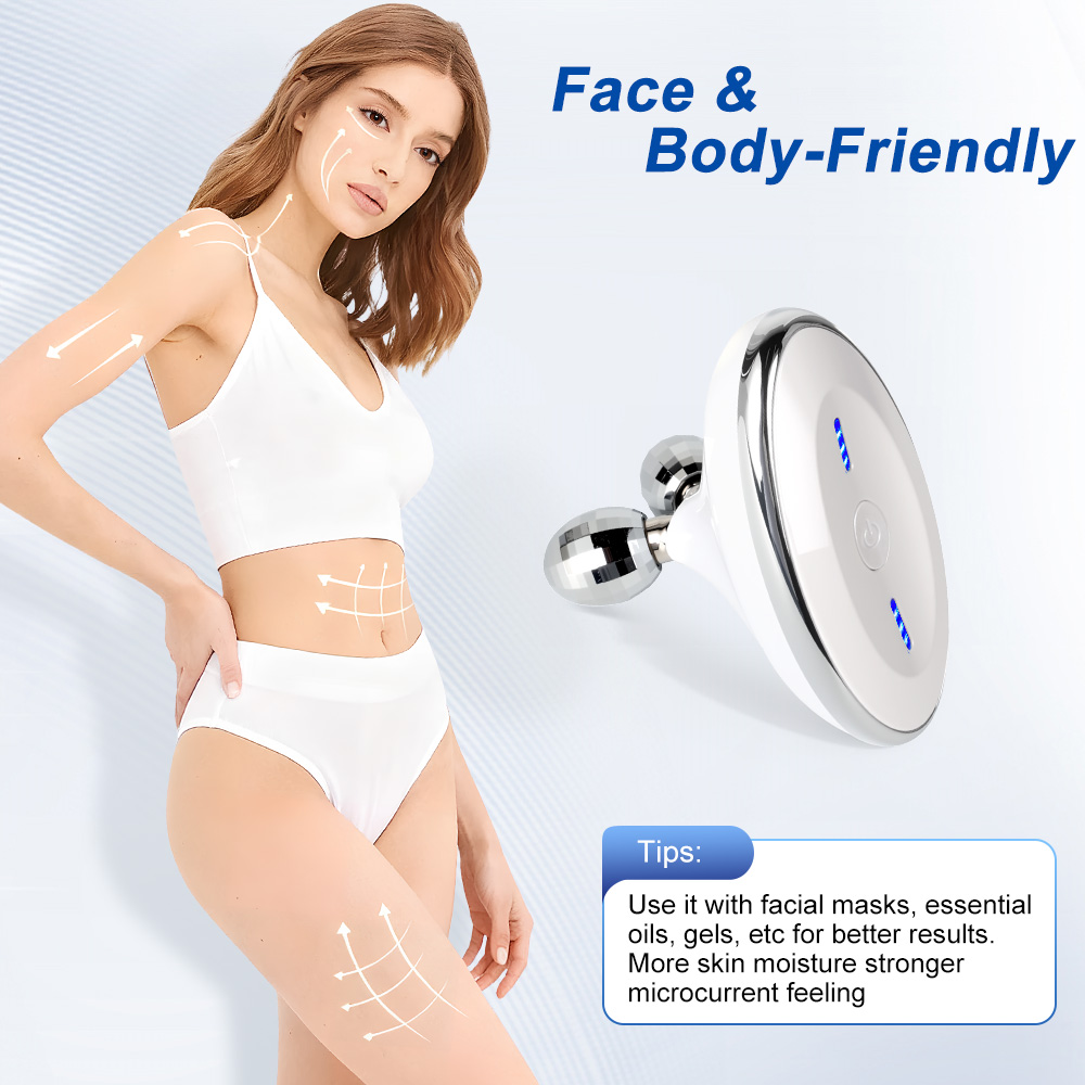 Equipped with dual ergonomic rolling heads, it delivers gentle microcurrent stimulation that mimics the body’s natural electrical signals, helping to improve skin firmness and contour definition.